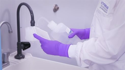 因此,Cygnus專(zhuān)家建議在使用Cygnus ELISA試劑盒時(shí)盡量采用手動(dòng)洗板的方法。該方法簡(jiǎn)便易學(xué),無(wú)需任何特殊設備。只要準備一些低纖維吸水紙和一個(gè)洗瓶就可輕松操作,需要注意的是洗瓶的出水口要修剪成大開(kāi)口斜面以確保洗液的充分流動(dòng)與合適的沖洗力度。