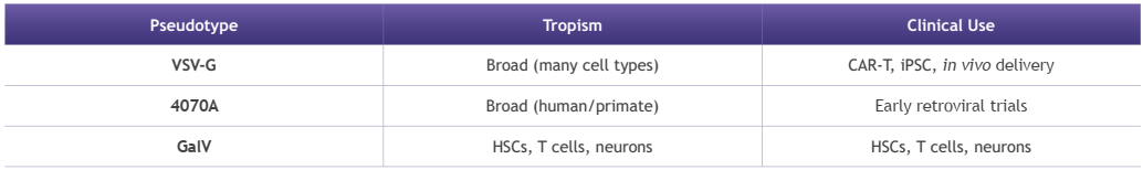 重組慢病毒可以通過(guò)不同的包膜蛋白來(lái)提高轉導效率和改變特異性,從而直接影響下游純化策略。
