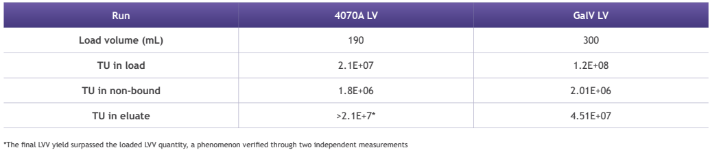 篩選裝置上樣量20ml,測得填料載量為3E+8 IU/ml。